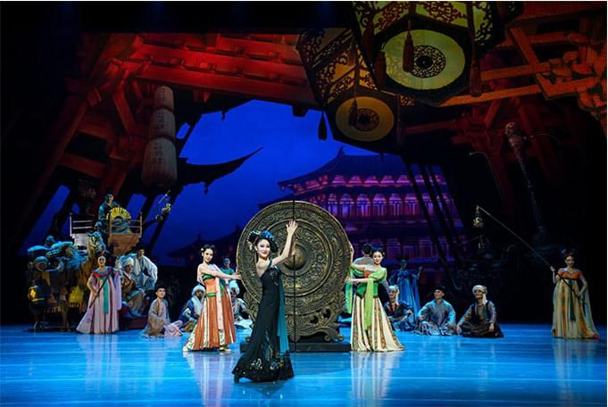 “大家可以看到,在這部舞劇中既有非常濃郁的盛唐風(fēng)格,也有非常鮮明的西域文化特點(diǎn)?!蔽鑴 秱鹘z公主》總導(dǎo)演左青表示。舞臺(tái)上的每一幕都有情景定位、情節(jié)助推、情感渲染、情調(diào)濡潤,兼具依托文本結(jié)構(gòu)的真情訴說和舞蹈本體的詩意表達(dá),構(gòu)建起舞劇的整體形式感。