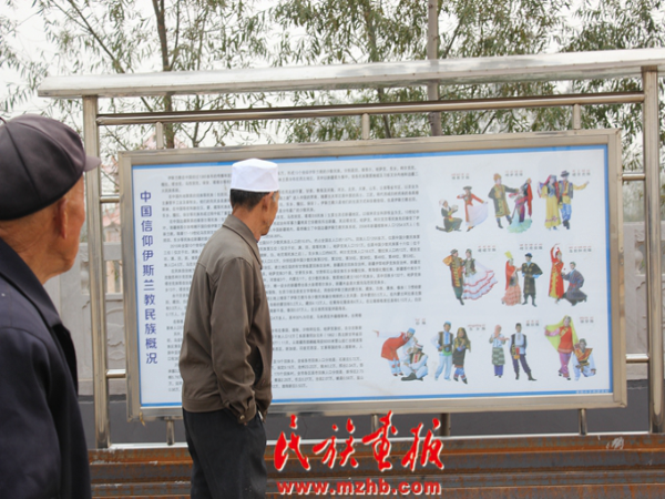 村中的展覽欄里有關(guān)于“中國(guó)信仰伊斯蘭教民族概括”的內(nèi)容