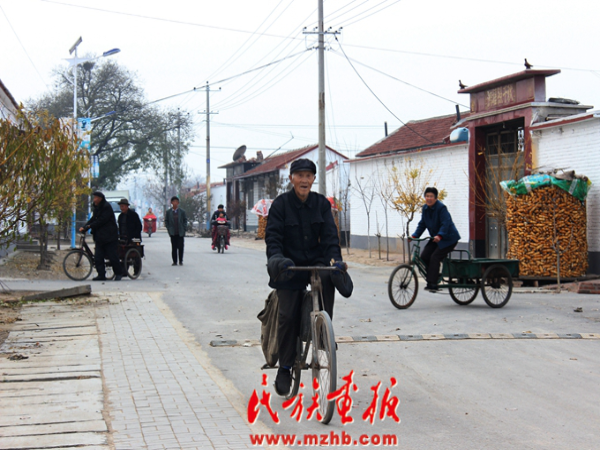 寬廣整潔的村道上,來(lái)來(lái)往往村民騎著各種代步工具