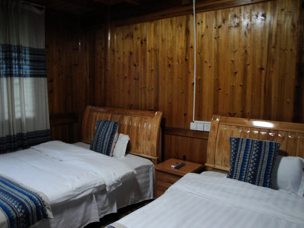 通道月也客棧臨河而建,為兩層結構四合院,屬全木質(zhì)結構建筑;客棧名“月也”二字來源于侗語,意為集體游鄉(xiāng)做客的社交習俗??蜅Uw裝飾具有濃郁的侗族傳統(tǒng)文化風情,別具一格;客房布置清新雅致,通風采光;設有多種房型,房內(nèi)配置獨立衛(wèi)浴、液晶電視、空調(diào)等設施,滿足游客日常生活所需。客棧附設餐廳,內(nèi)含7個包廂和面積約160平米的合攏宴大廳,可同時容納200余人用餐,經(jīng)營地道農(nóng)家土菜,游客可盡享口福之樂;建筑中間四百平米的院落可供游客舉辦各類聚會活動、文化沙龍、小型表演,盡享愉悅的入住時光。
