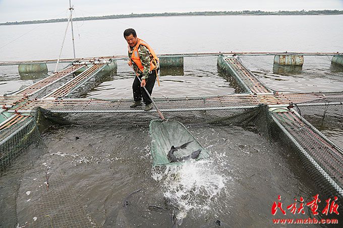 在黑龍江畔,通過(guò)網(wǎng)箱養(yǎng)魚做到既保證群眾的收入,又保護(hù)好黑龍江的魚類資源。