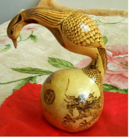 甘肅臨夏雕刻葫蘆是民族傳統(tǒng)工藝美術(shù)品的杰出代表,以其品種豐富、色澤黃白、皮質(zhì)華潤光潔,雕刻栩栩如生而聞名。葫蘆雕外形呈橢圓形或S形,表面多以雕刻山水人物、文字等,再飾以松墨,十分美觀。臨夏葫蘆雕刻經(jīng)過十幾代雕刻藝人的不懈藝術(shù)探索,形成了其獨特的藝術(shù)風(fēng)格、別致的造型和卓越的技藝,堪稱甘肅“隴上一絕”,成為臨夏對外交往的一張文化名片,具有極高的觀賞和收藏價值。