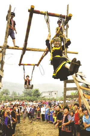 居住在云南省祥云縣的彝族在農(nóng)歷二月初八這一天要過(guò)啞神節(jié),跳啞巴舞。過(guò)節(jié)最熱鬧當(dāng)數(shù)大營(yíng)七宣村。