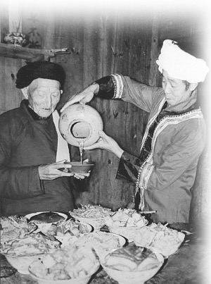在紅白喜事中,土家族用坐席這種方式,表現(xiàn)出對長輩、客人的尊重。即使在平常的待客中,他們也要在堂屋中支起八仙桌,把客人請到上席就坐,端上最好的飯菜,讓人感受到土家人的真誠、熱情和友善。