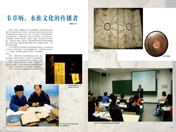 多年來,韋章炳在全國各大報紙雜志上發(fā)表論文數(shù)百篇,其中《水族背帶——遠(yuǎn)古的馬尾繡藝術(shù)》《水族族源探析》和《解讀華夏奇書——水書》《水書在唯物視野中的價值作用》等研究成果在學(xué)術(shù)界引起廣泛關(guān)注。特別是《水書在唯物視野中的價值作用》論述了水族文化在維系自然生態(tài)、維系社會和諧、維系人際德行上的一貫作用,并指出古代水族文字的創(chuàng)造為后來許多文化的產(chǎn)生提供了一個范例作用的觀點,得到學(xué)術(shù)界的一致好評。因此,他成為中國民俗學(xué)會會員、貴州省水家學(xué)會常務(wù)理事。