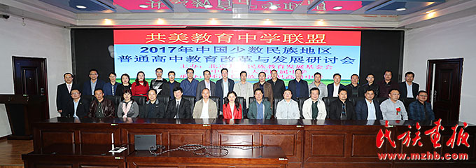 圖為參加“2017中國(guó)少數(shù)民族地區(qū)普通高中教育改革和發(fā)展研討會(huì)”的參會(huì)代表合影留念
