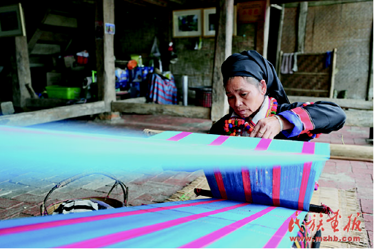 德昂族織錦編織。
