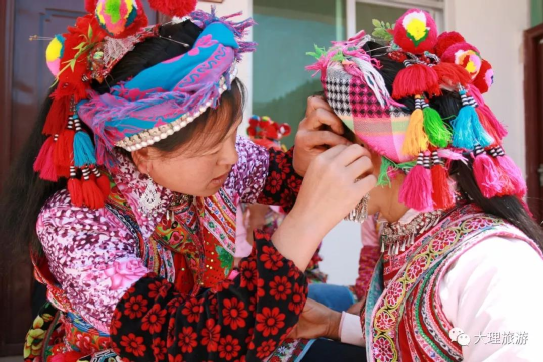 彌渡彝族好賽裝,每逢婚喪嫁娶、趕集、集會都要比一比穿戴。每年農歷正月十五鐵柱廟彝族踏歌會,那是賽裝高潮。