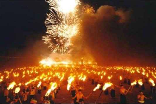 關(guān)于火把節(jié)的傳說較多,有紀念漢代酋長曼阿南之妻阿南夫人殉夫之事;有三國時群眾歡送諸葛亮南征得勝回成都之事;有南詔王皮羅閣“火燒松明樓”,柏節(jié)夫人殉節(jié)之事;還有紀念五谷之神“達撥”,祈求五谷豐登,六畜興旺之意。