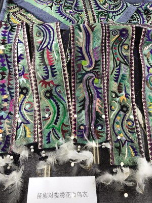 展出的苗族對(duì)襟繡花百鳥衣。圖片攝影:高瑩