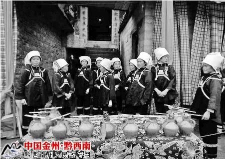——禮俗歌。內(nèi)容豐富多彩,節(jié)日或喜慶之日,主客于席上互相吟唱,以抒情懷。以席局《酒歌》為例??煞帧秵柧聘琛?、《謝酒歌》、《敬酒歌》等。這些歌,無一不表現(xiàn)出布依族的謙遜、熱情、直爽、好客的美德。禮俗歌還包括敬老人歌、贊媳婦歌、進(jìn)寨歌、出寨歌、宵夜歌等。這些歌無不反映出布依族尊老愛幼的傳統(tǒng)美德。特別值得一提的是布依族青年男女經(jīng)過“浪哨“擇愛后,《問媒歌》、《問八字歌》、《說親歌》、《打親家歌》等就詳盡記述了成親過程,很有研究價(jià)值。接下來還有《接親歌》、《送親歌》、《擺酒歌》等描述主客的喜悅心情和結(jié)親的歡樂氣氛。