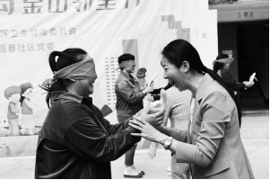 為進一步弘揚睦鄰友好、鄰里相親的傳統(tǒng)美德,阿勒泰市金山路街道以社區(qū)為單元、居民為主體,舉辦了“與鄰為善,以鄰為伴”“讓愛零距離”等形式多樣的“睦鄰節(jié)”活動,各社區(qū)還分別表彰了“最好鄰居”“最美婆婆”“模范丈夫”“民族團結之星”等。圖為社區(qū)開展的趣味運動會——“盲人”吃香蕉游戲。